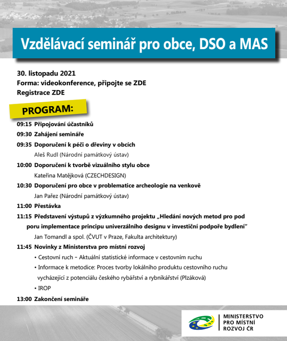 Registrace na seminář 30. 11. 2021 je zde a připojit se lze tady.
