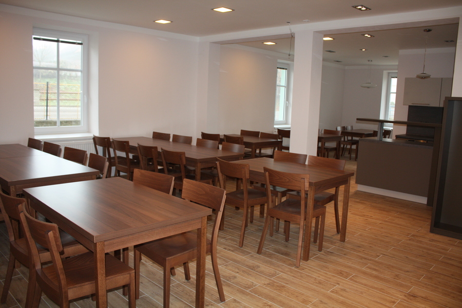 Výstupy z projektu: 44 ks židlí, 16 ks stolů, 1 ks stolek, 18 ks skříní, 3 ks police, obslužná sestava, kuchyňská linka, pult se skříňkou, počítačová sestava s MS Office s tiskárnou, 2 ks dřezů, vestavěné elektrospotřebiče.